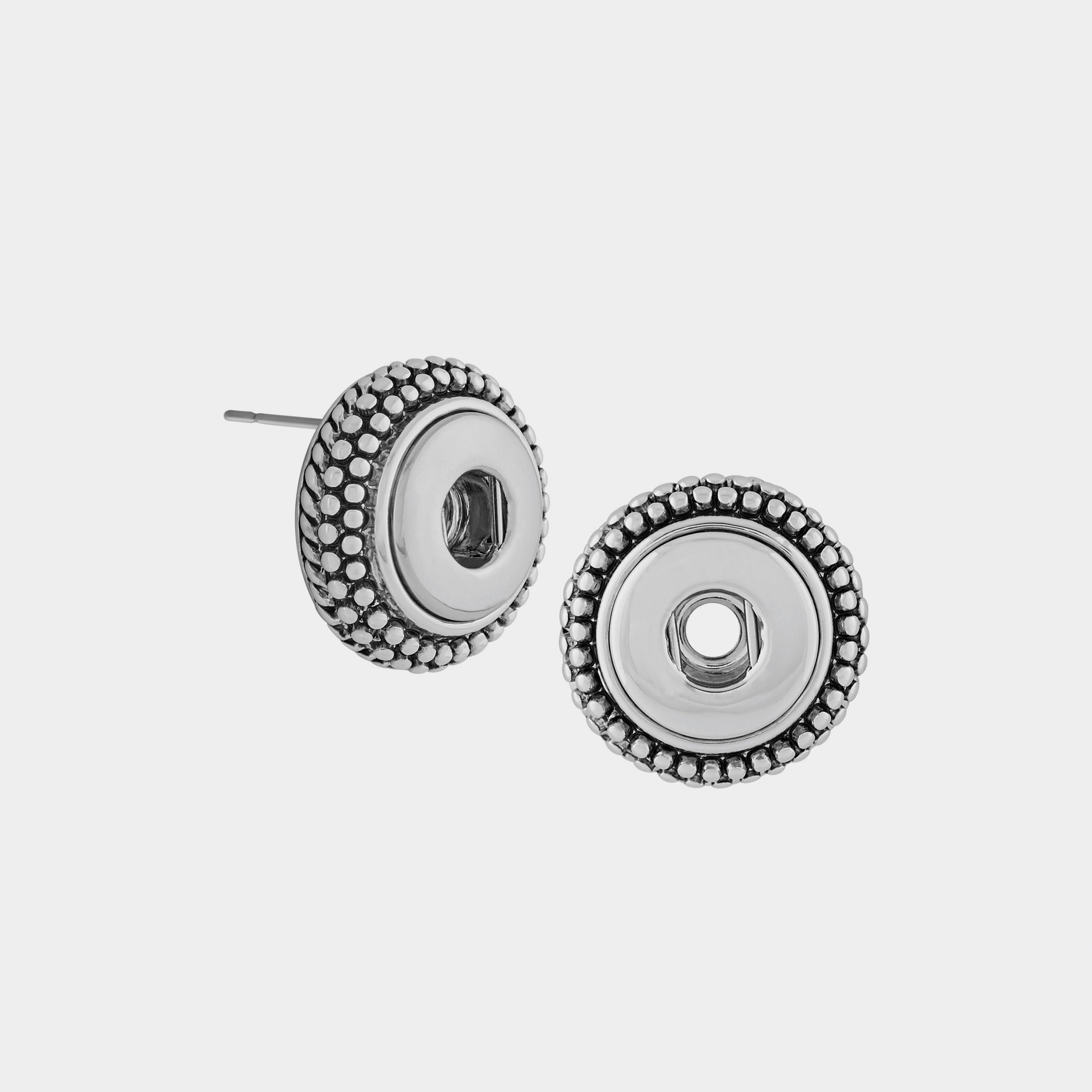 Small in size but big on style. Mix and match to create a look that's all your own. 12mm petite jewelry and accessories only work with 12mm Petite Ginger Snaps. Dimensions: Stud. Materials: Rhodium.